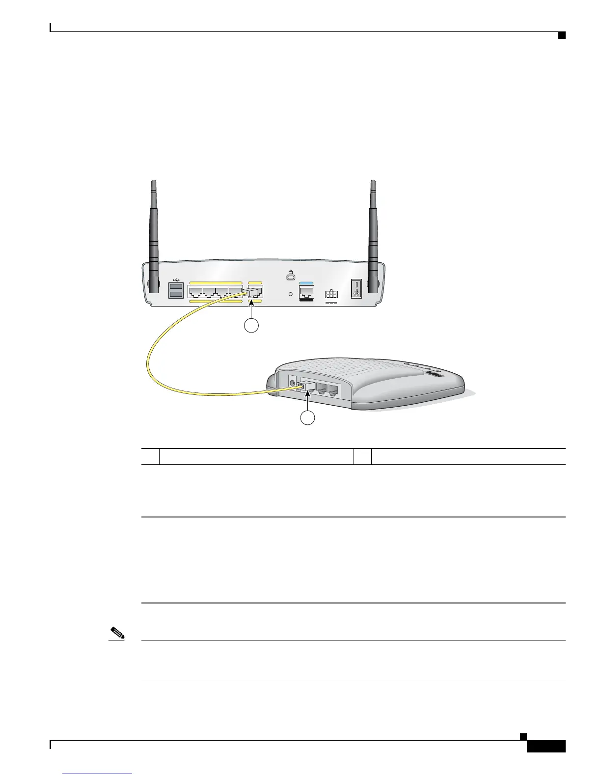 1 Ethernet WAN port on the router 2 Available port on the modem