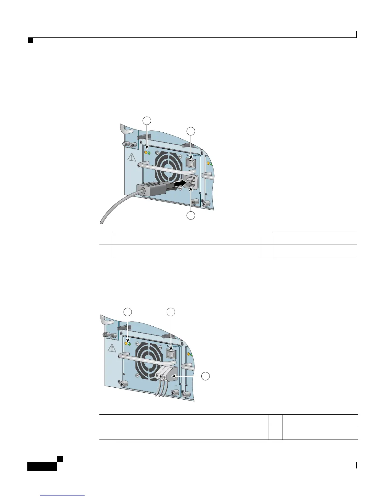 Figure 2-17 shows the AC power supply LEDs. These LEDs indicate the power