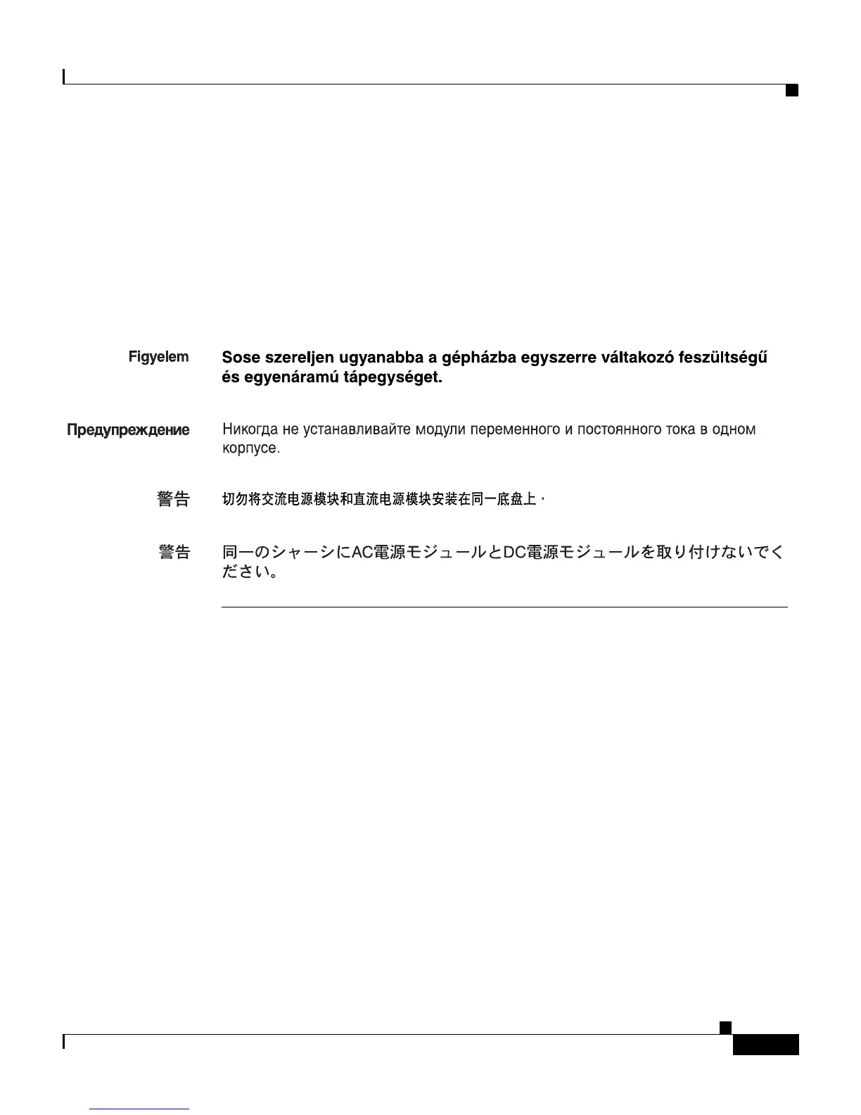 Installera aldrig en växelströms- och en likströmskraftenhet i samma chassi.