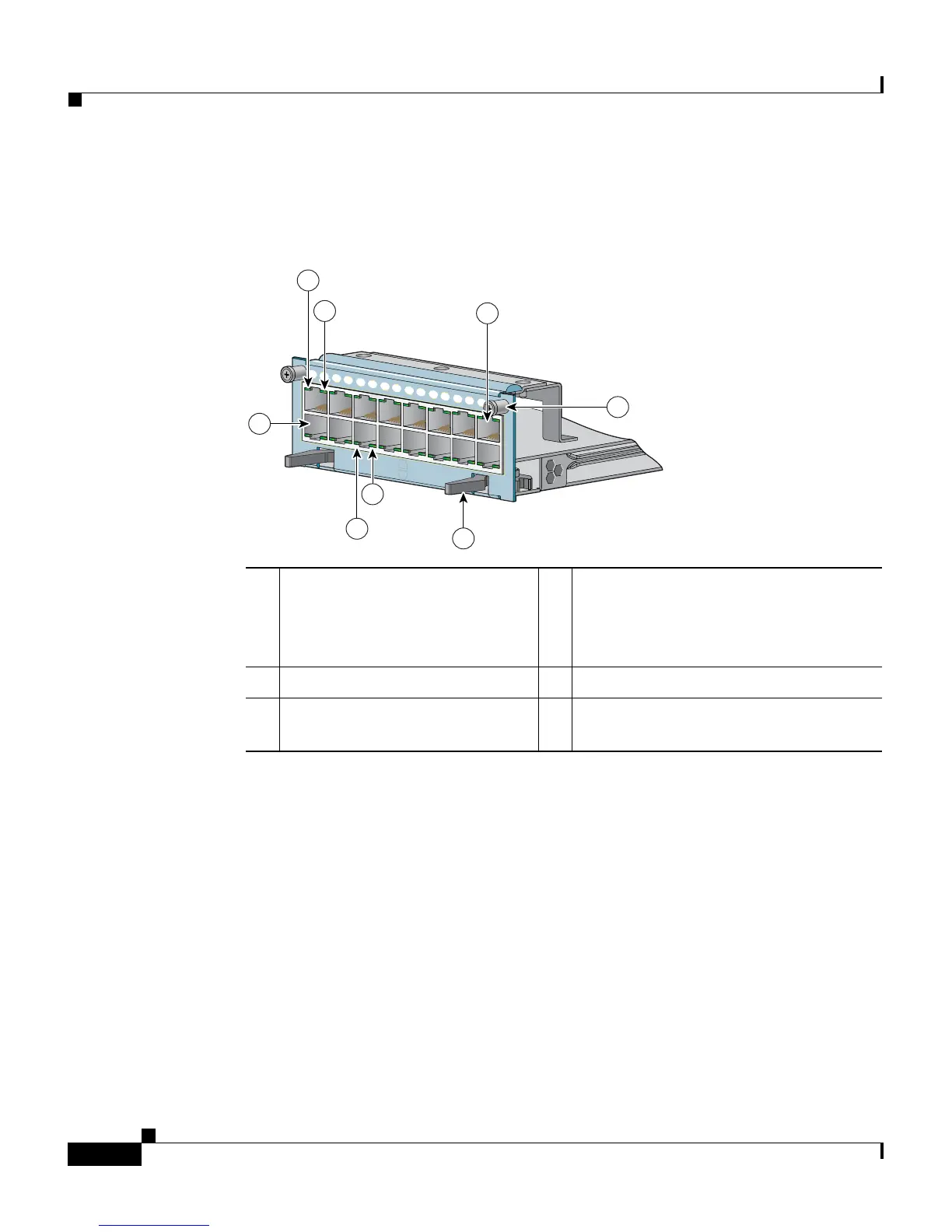 Figure 2-6 16-Port Fast Ethernet Module Connectors and LEDs