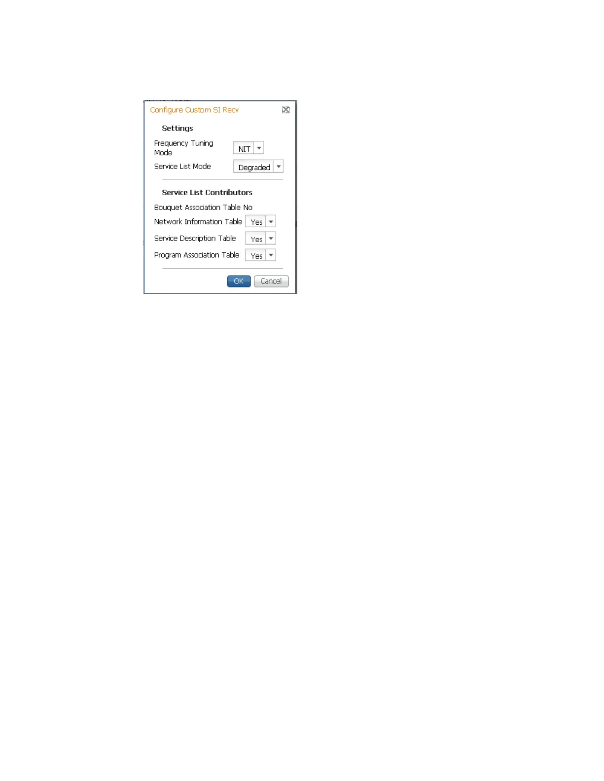 If you select Custom, click Configure Custom SI Recv and the Configure