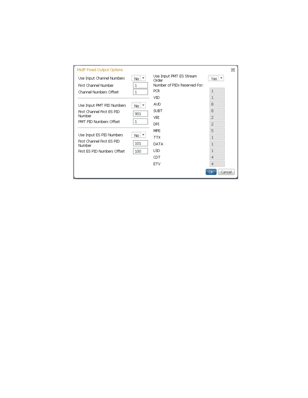 ii In the PMT PID Numbers Offset field, enter the offset of the subsequent