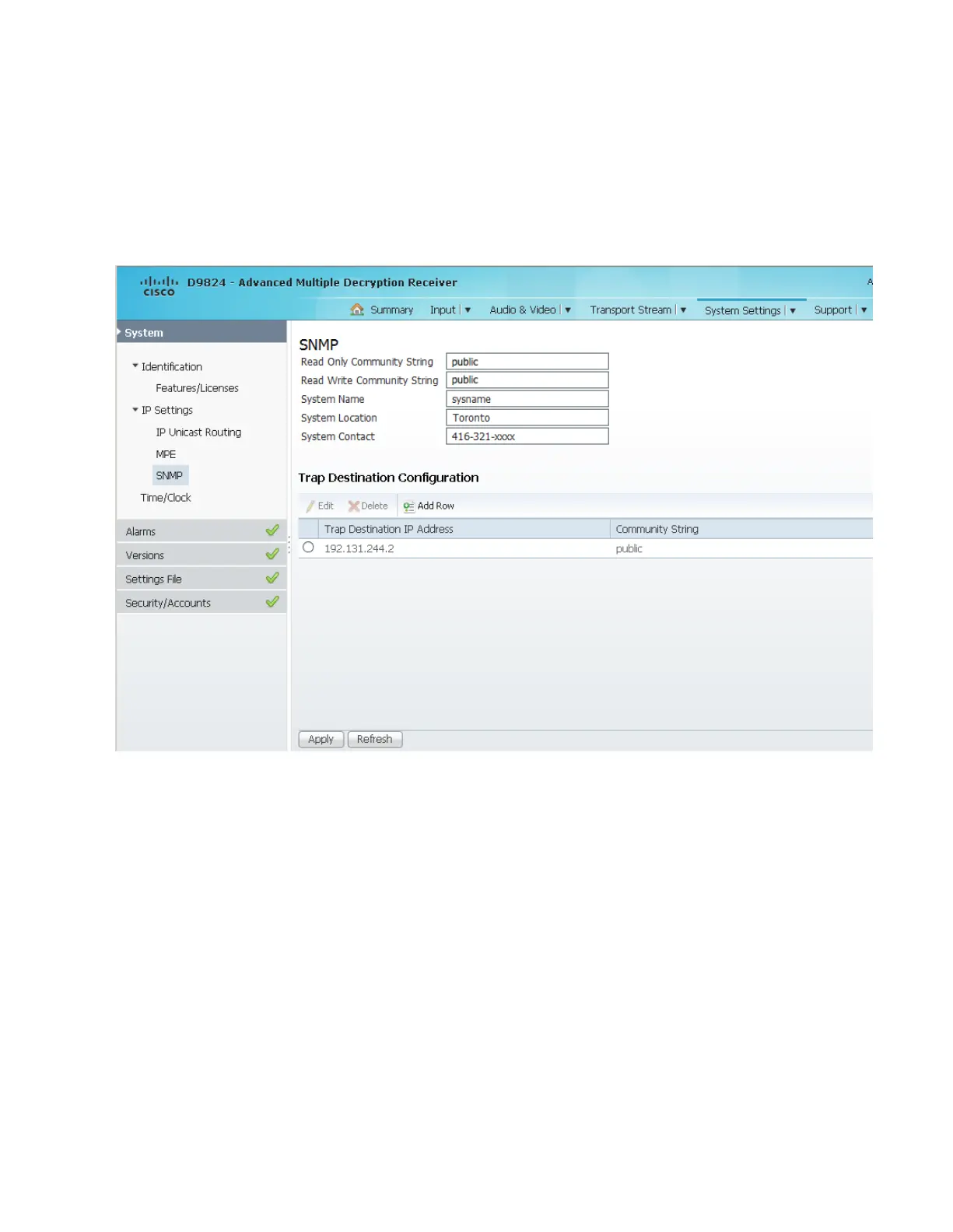 1 From the user interface of the D9824, choose System Settings > IP Settings >