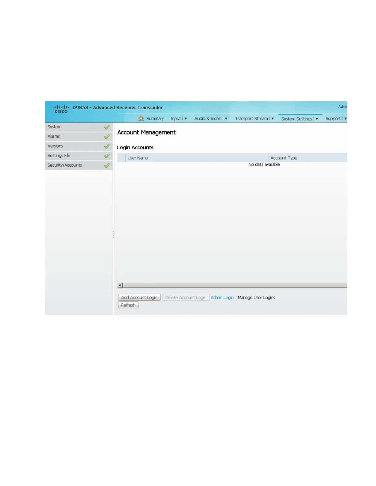 Login Accounts page is displayed.