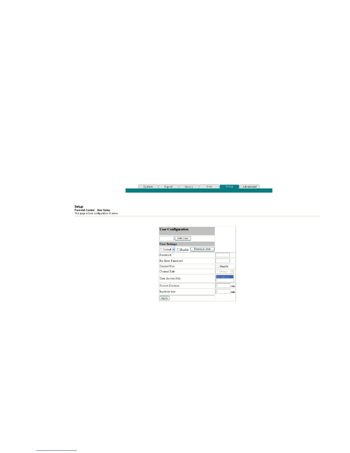 Use the Setup Parental Control - User Setup page to configure parental controls on