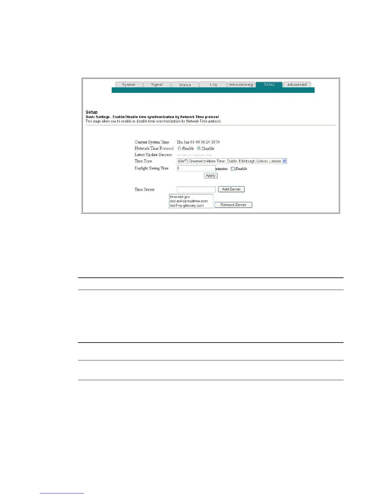 Setup Basic Settings - Enable/Disable Time Synchronization by Network Time Protocol Page