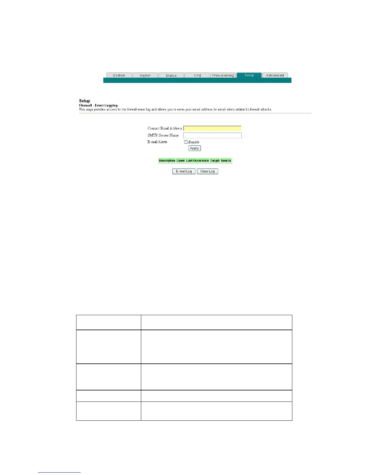 Setup Firewall - Event Logging Page Description