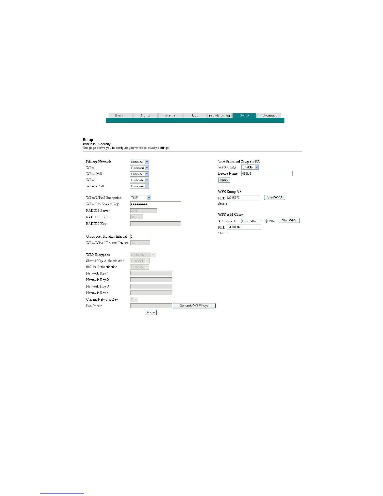 Note: If you make changes in the Setup Wireless - Security page, click Apply to
