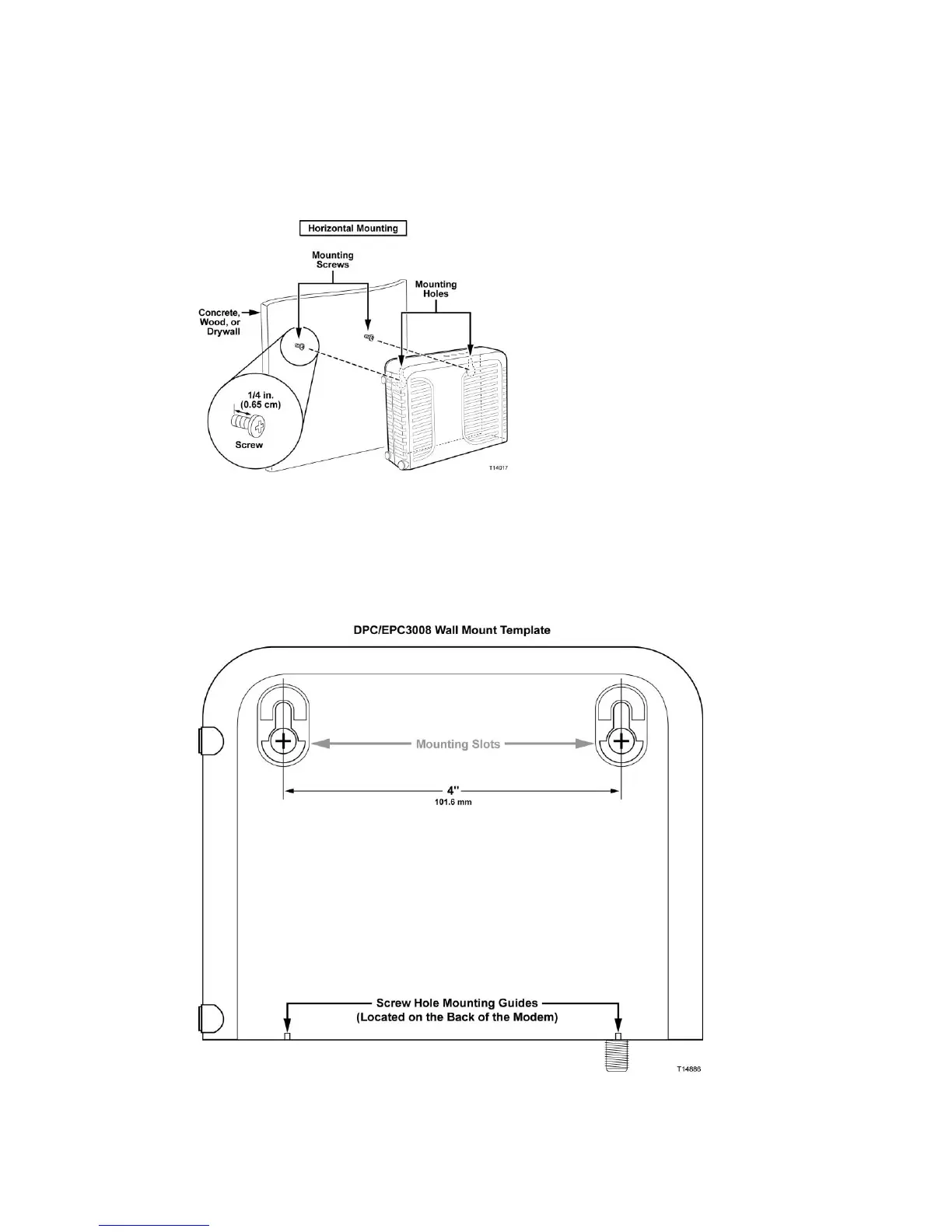slots on the bottom of the cable modem. Use this illustration as a guide for mounting