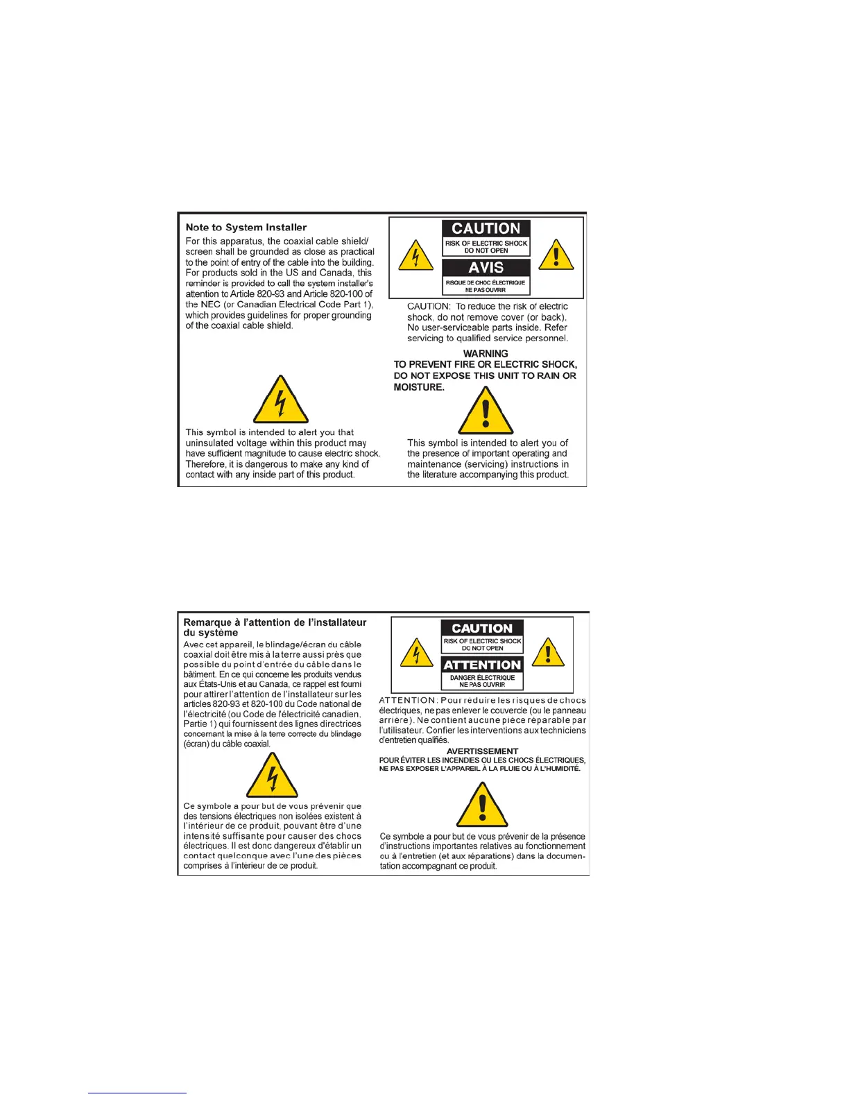 exclusivement au personnel technique qualifié. Pour réduire les risques de chocs électriques, n’effectuer