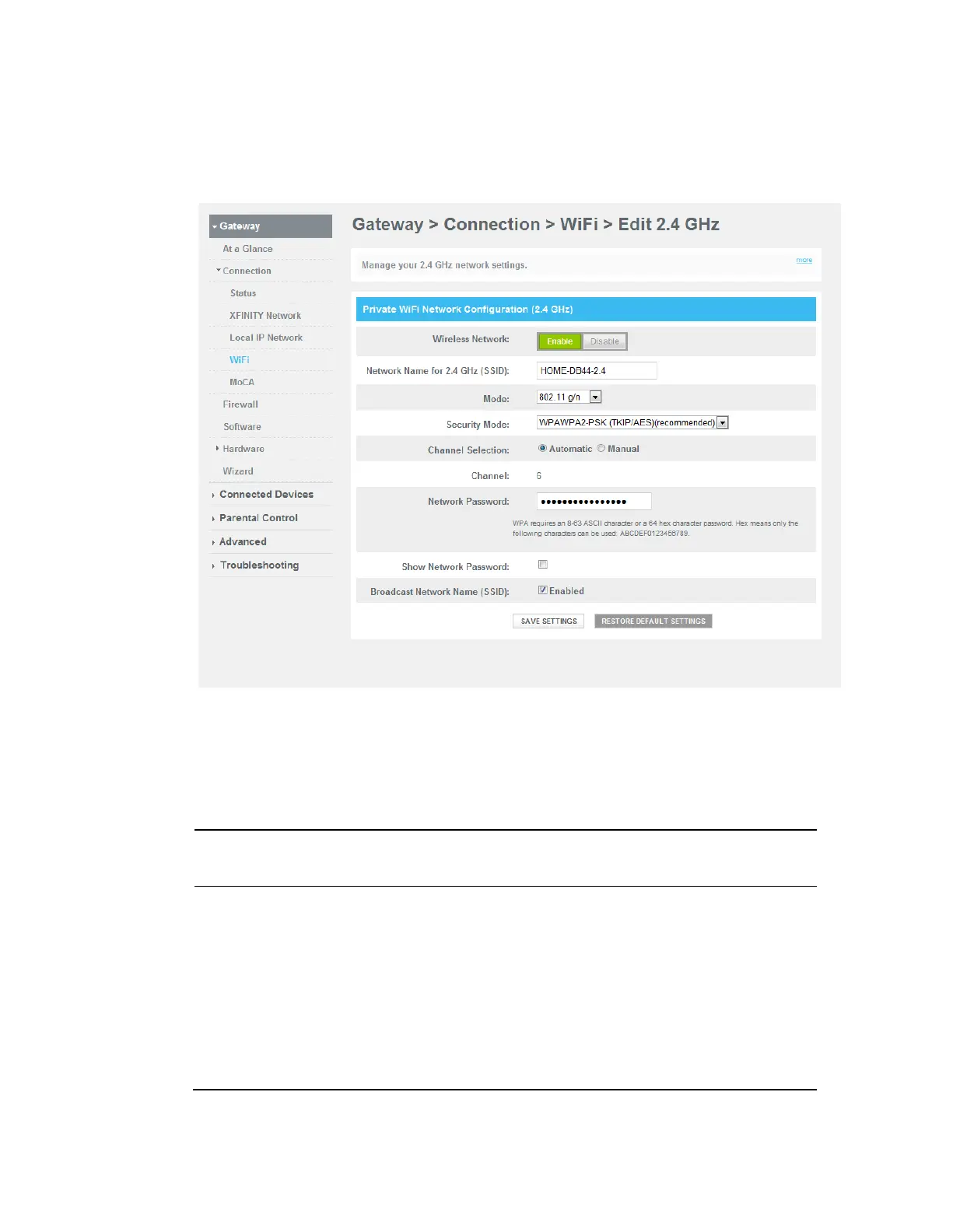 This section describes how to configure wireless settings for the 2.4 GHz wireless