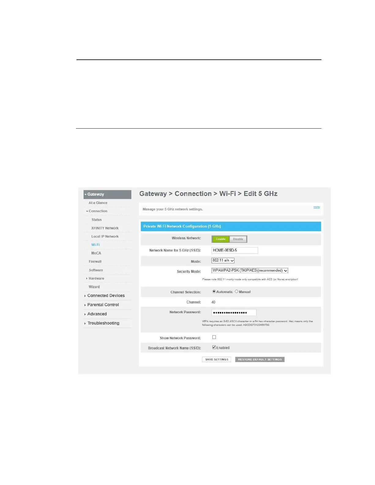 Configure the Residential Gateway for the 5 GHz Wireless Network