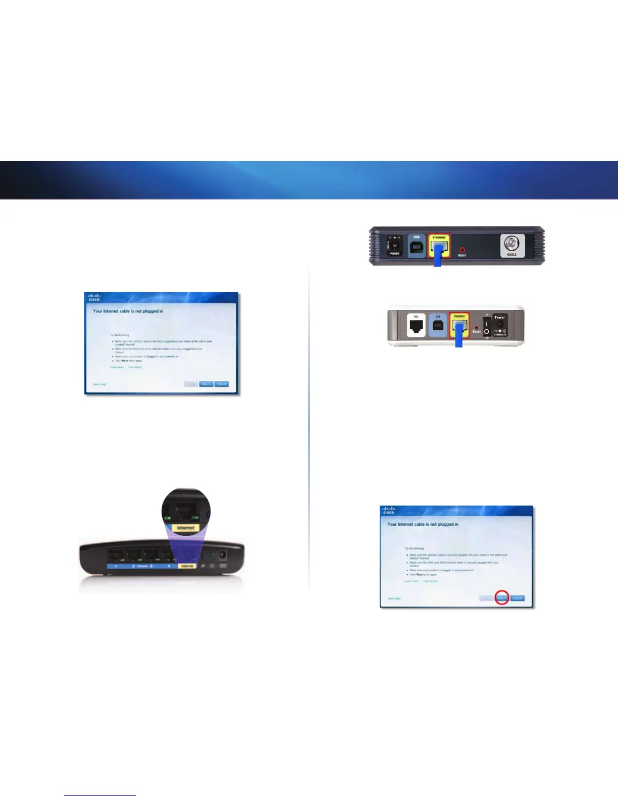 Als het bericht “Your Internet cable is not plugged in” verschijnt wanneer