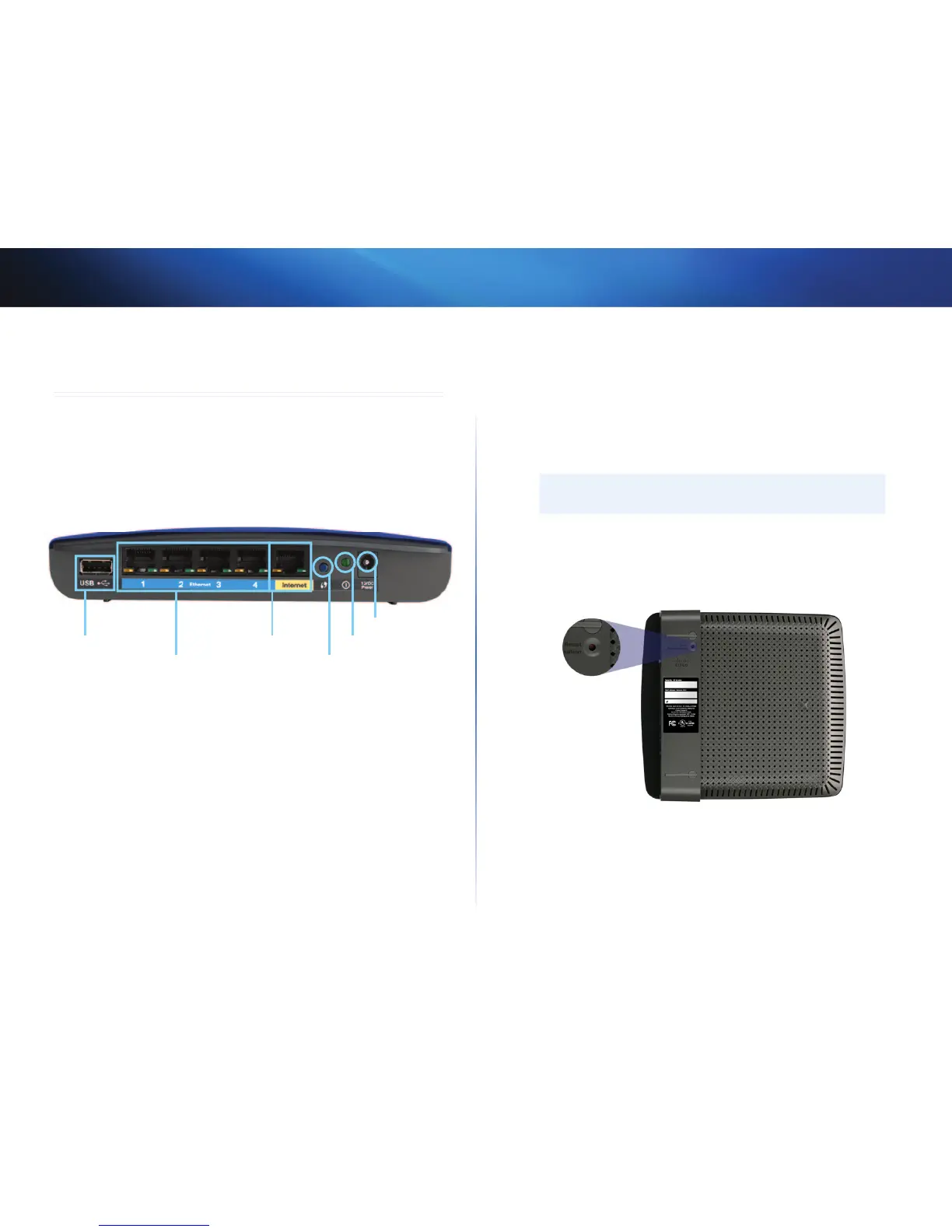 • Butonul Power (Alimentare)—Apăsaţi | (pornit) pentru a porni routerul.