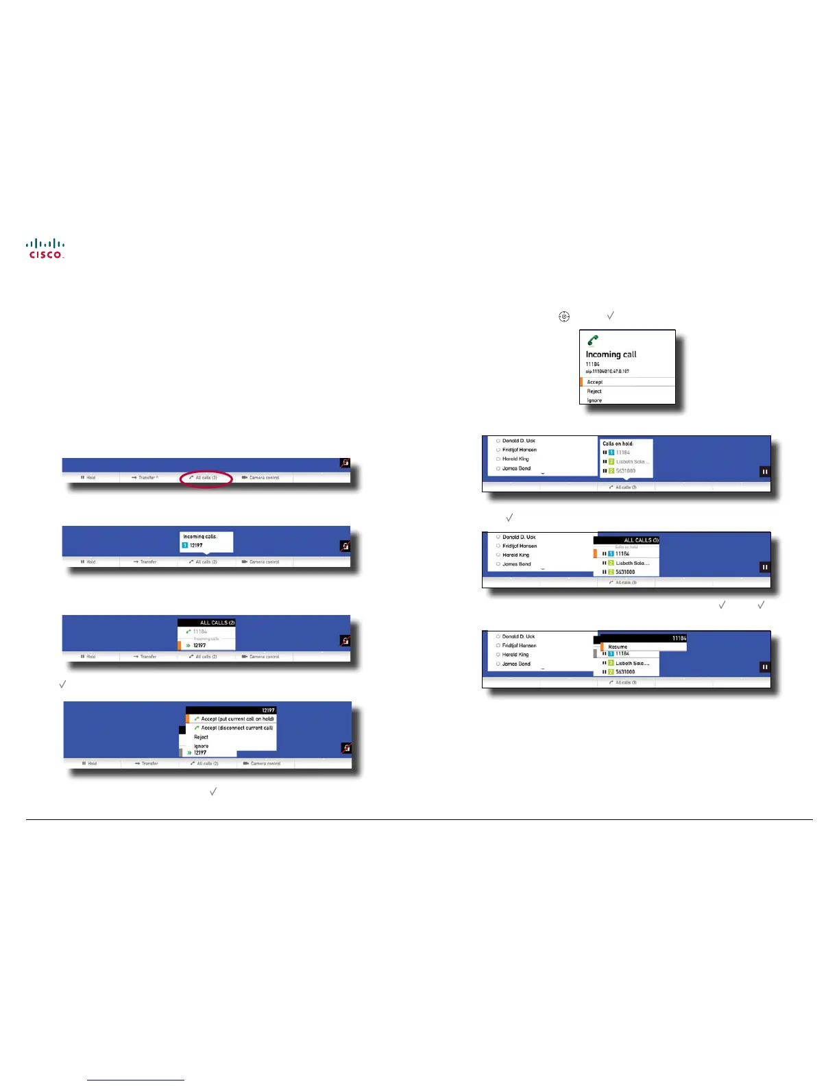 If the alert level has been set to Regular, another incoming call will appear as