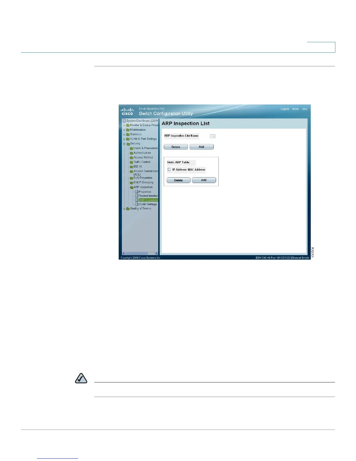 • Delete and Add Buttons — Delete or Add user-defined ARP Inspection Lists.