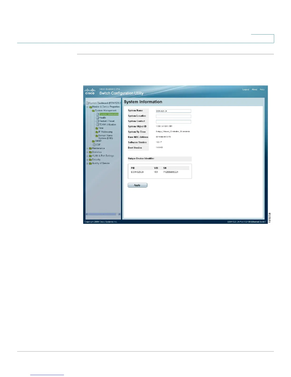 STEP 1 Click Monitor & Device Properties > System Management > System Information.