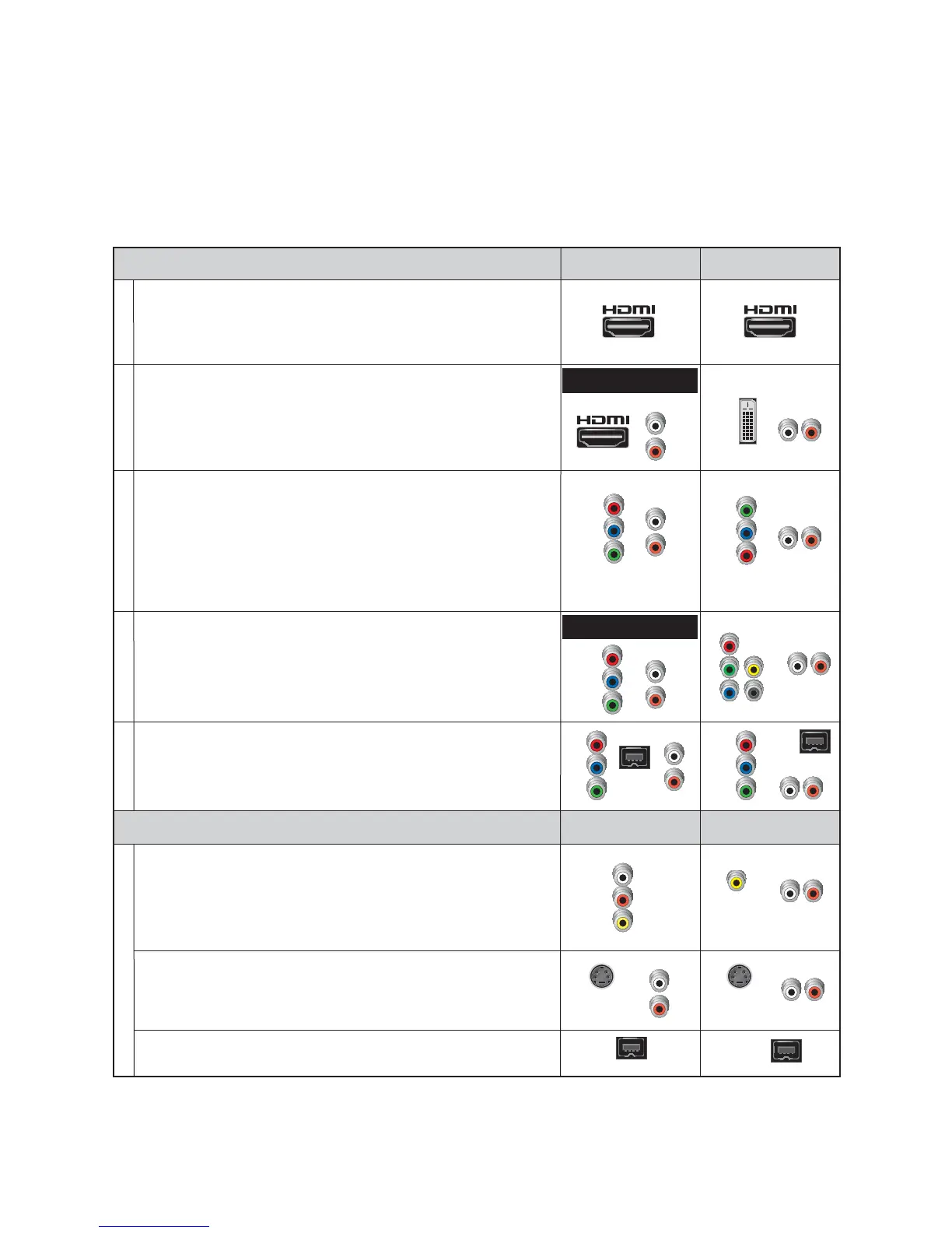 Required Connections to an HDTV (use one)