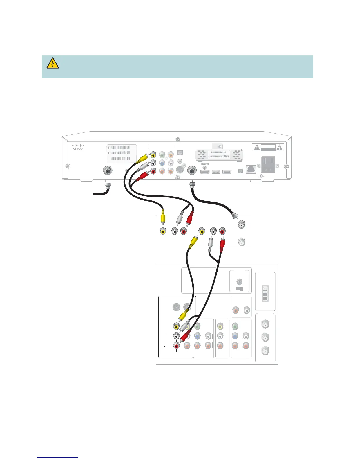 WARNING: Electric shock hazard! Unplug all electronic devices before connecting or