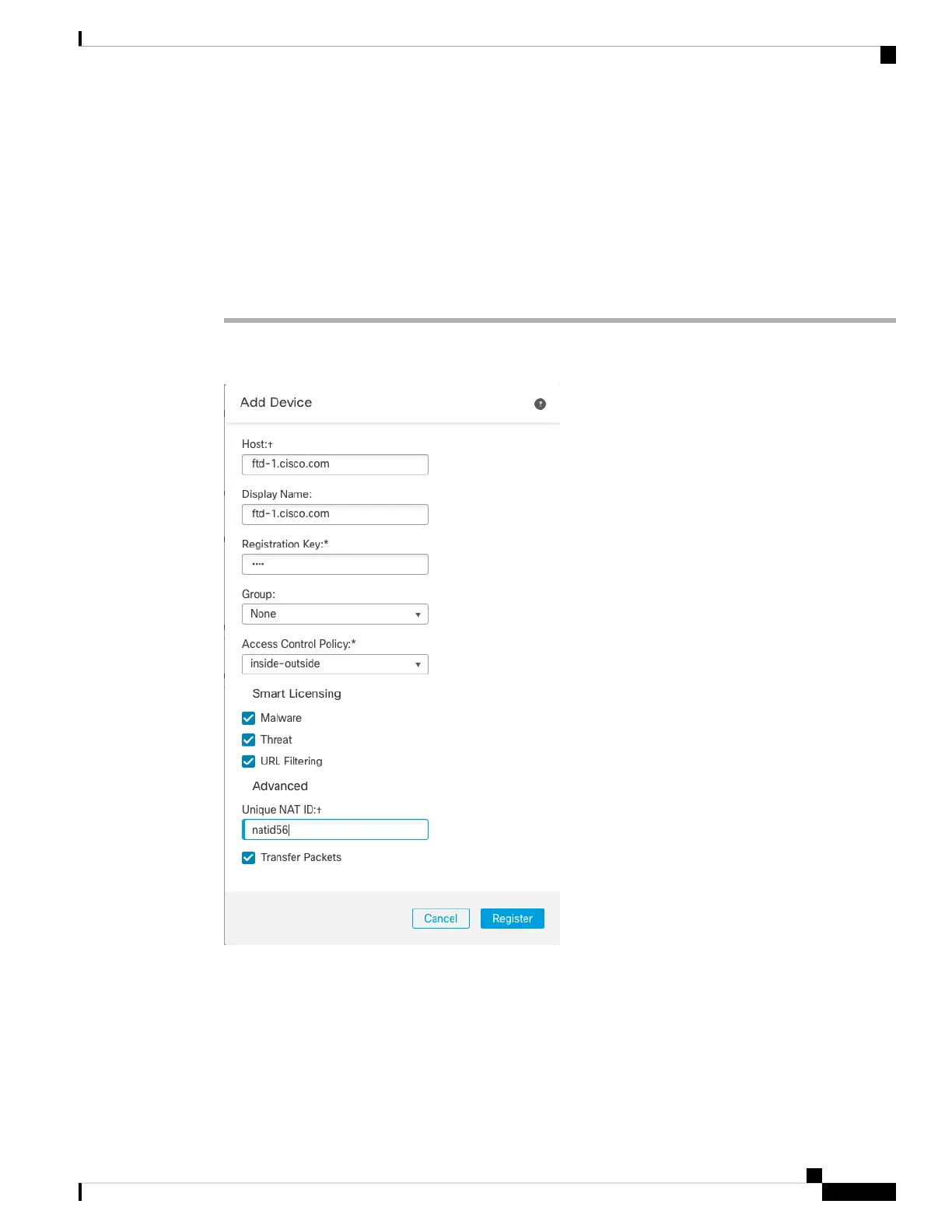 • Host—Enter the IP address or hostname of the threat defense you want to add. You can leave this field