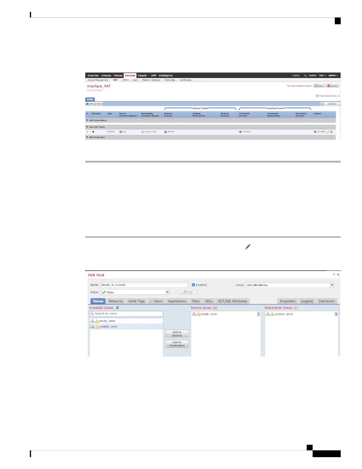 allow traffic from the inside zone to the outside zone. If you have other zones, be sure to add rules allowing