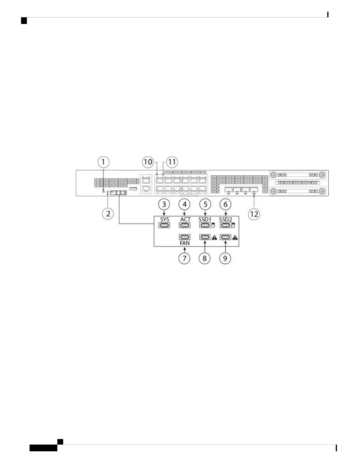Figure 8: Firepower 2110 and 2120 Front Panel LEDs