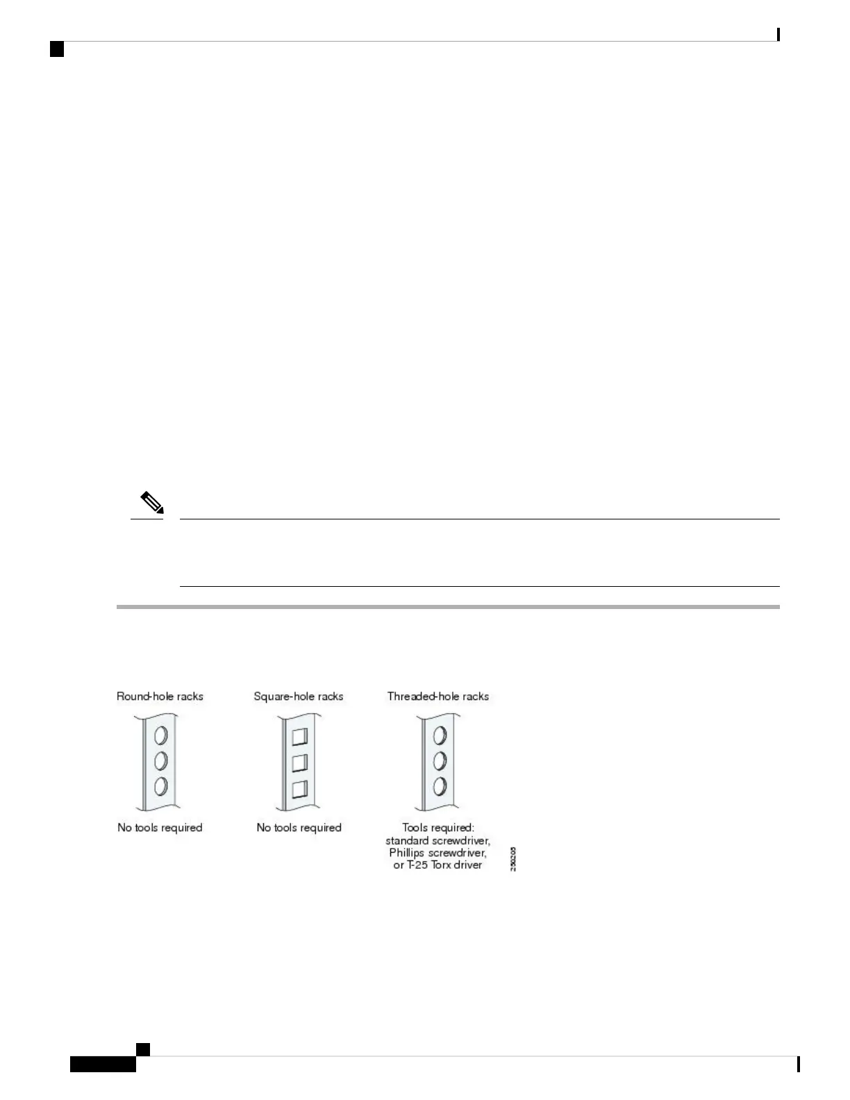 Step 1 Determine what type of rack you have. You can use the rails in three different rack types. The following figure shows