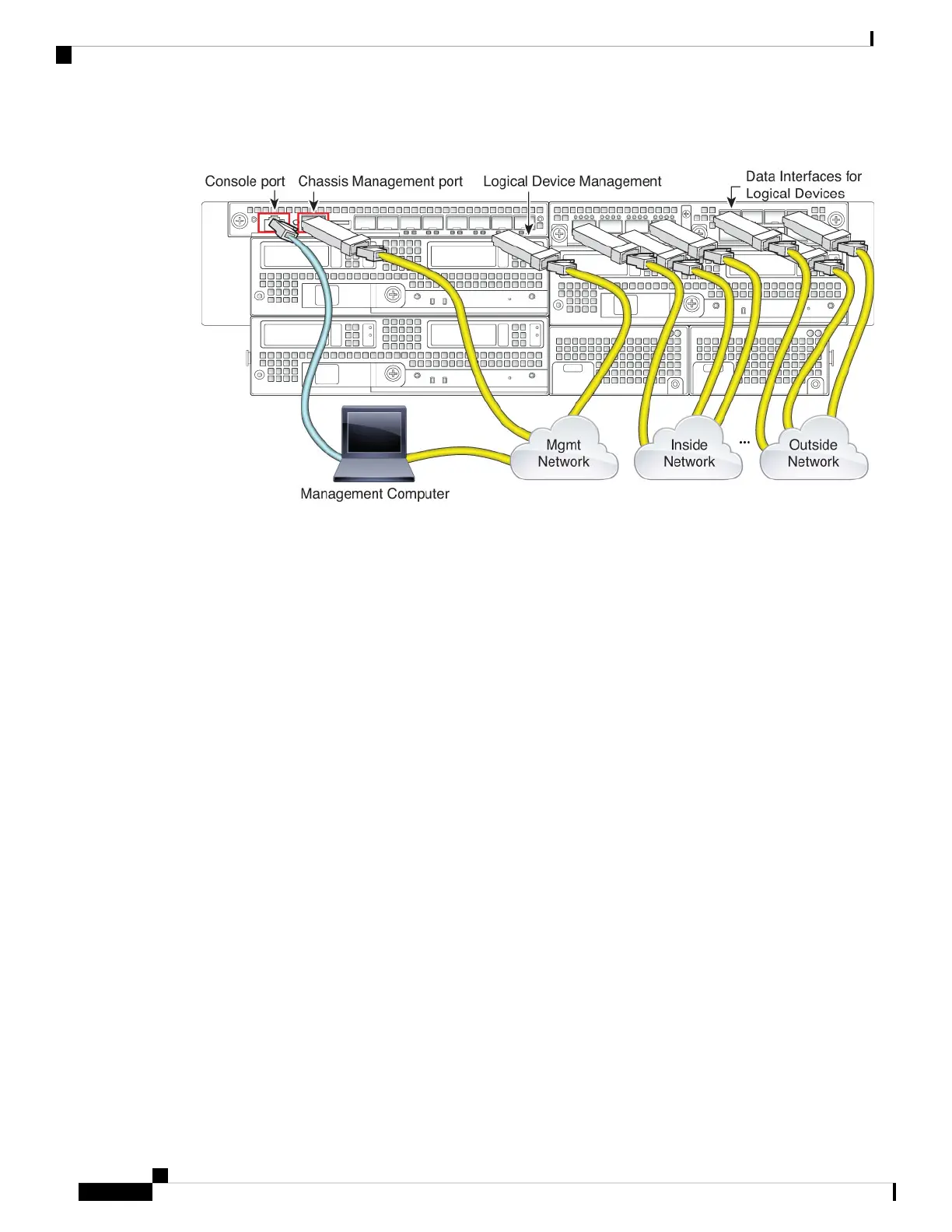 Cable the following interfaces for initial chassis setup, continued monitoring, and logical device use.