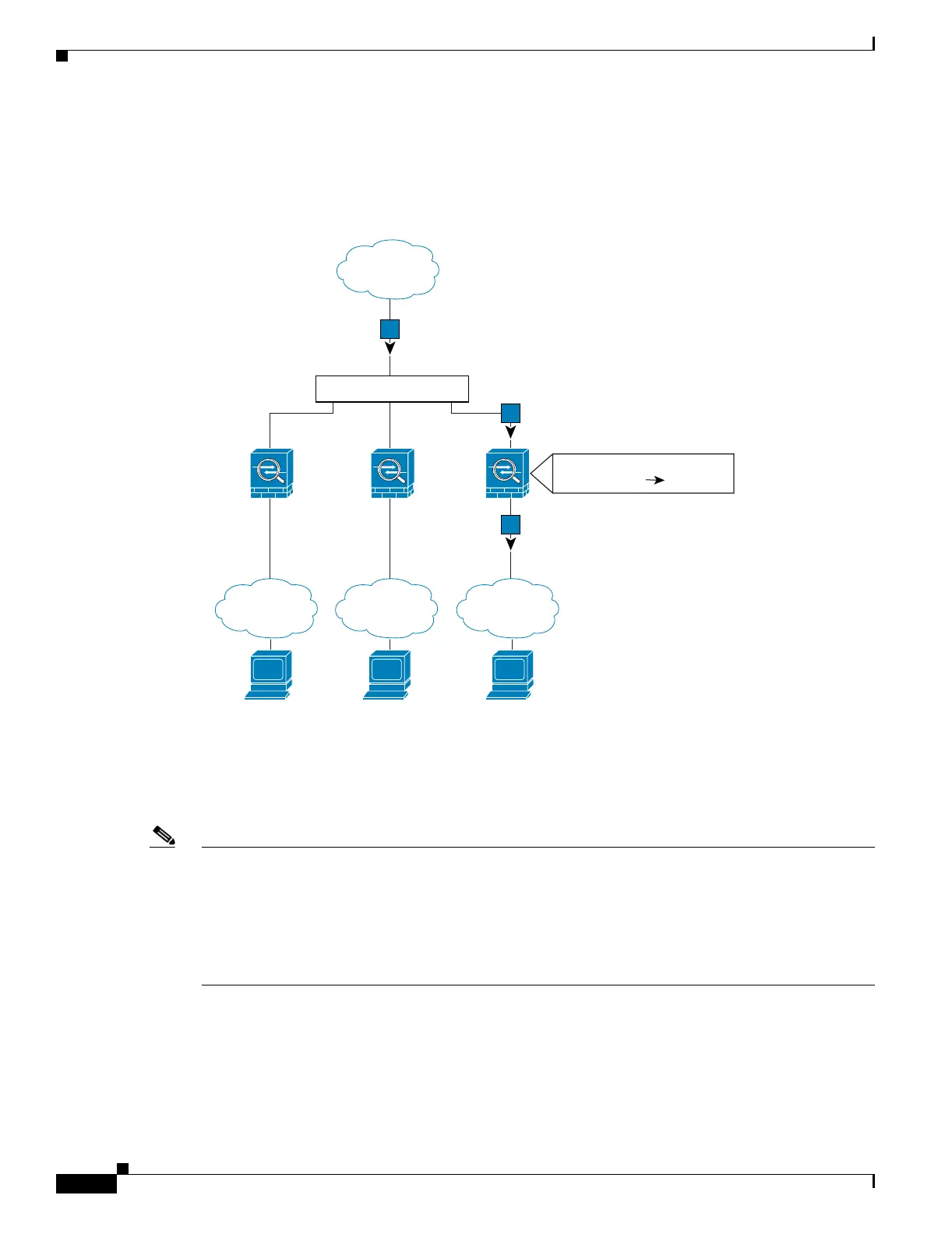 Figure 3-2 shows multiple contexts sharing an outside interface without MAC addresses assigned. The