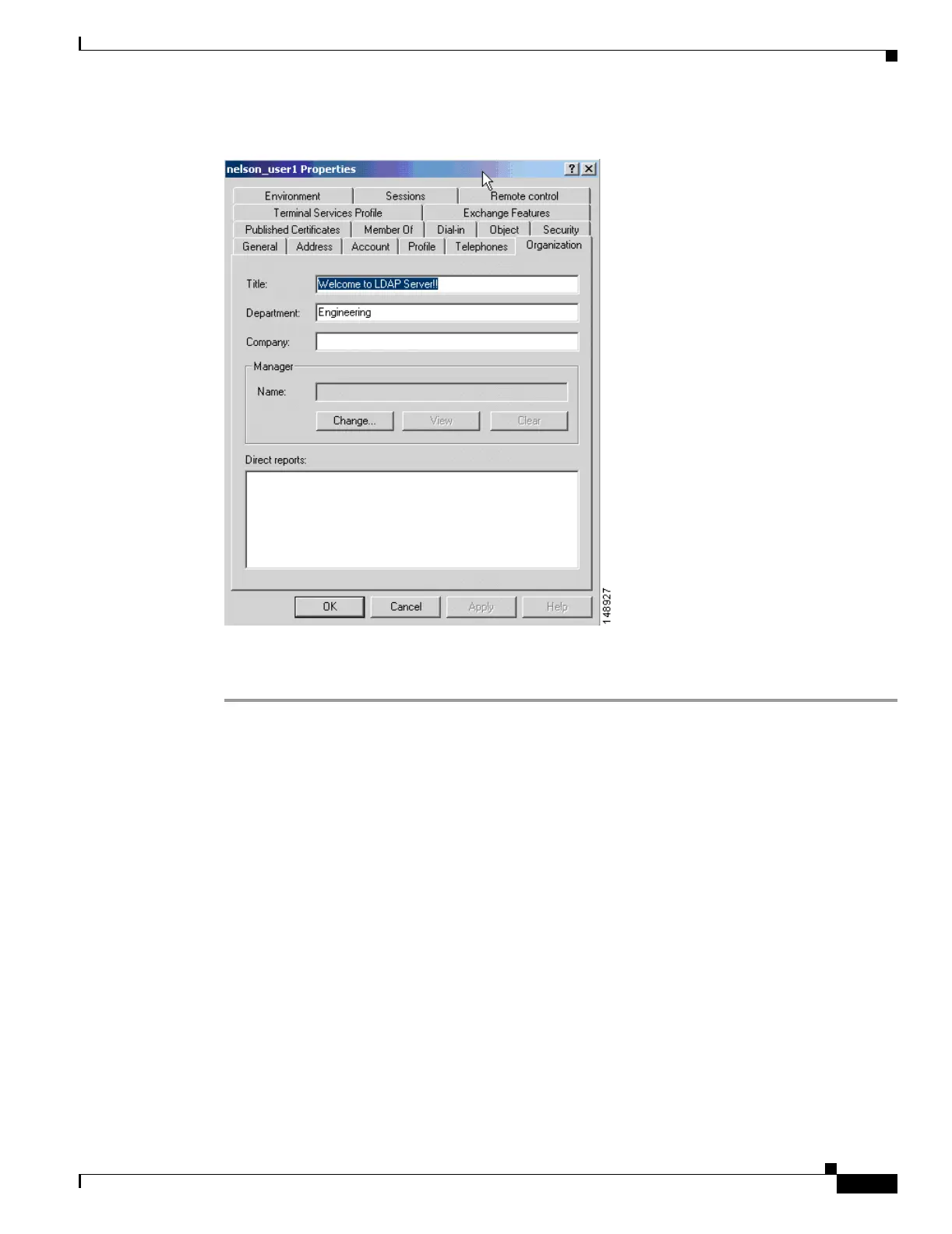 Figure E-5 The Organization Tab of the Active Directory Users and Computer Dialog