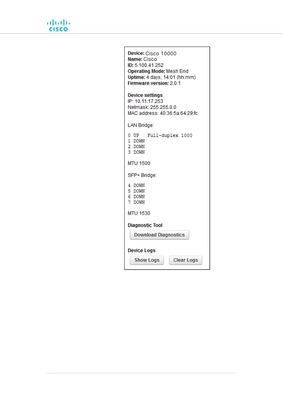 1. Click the Download Diagnostics button.