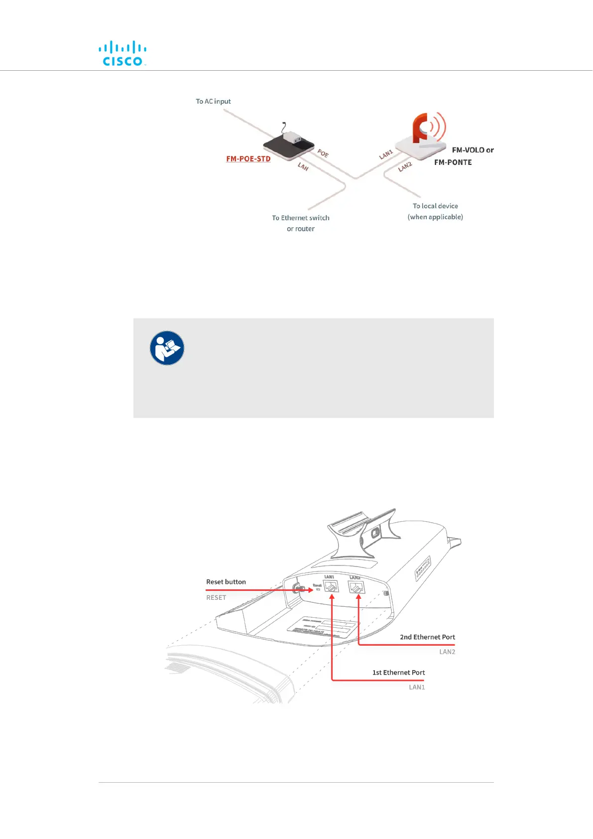 The Cisco FM1200 Volo radio transceiver unit has two Ethernet ports
