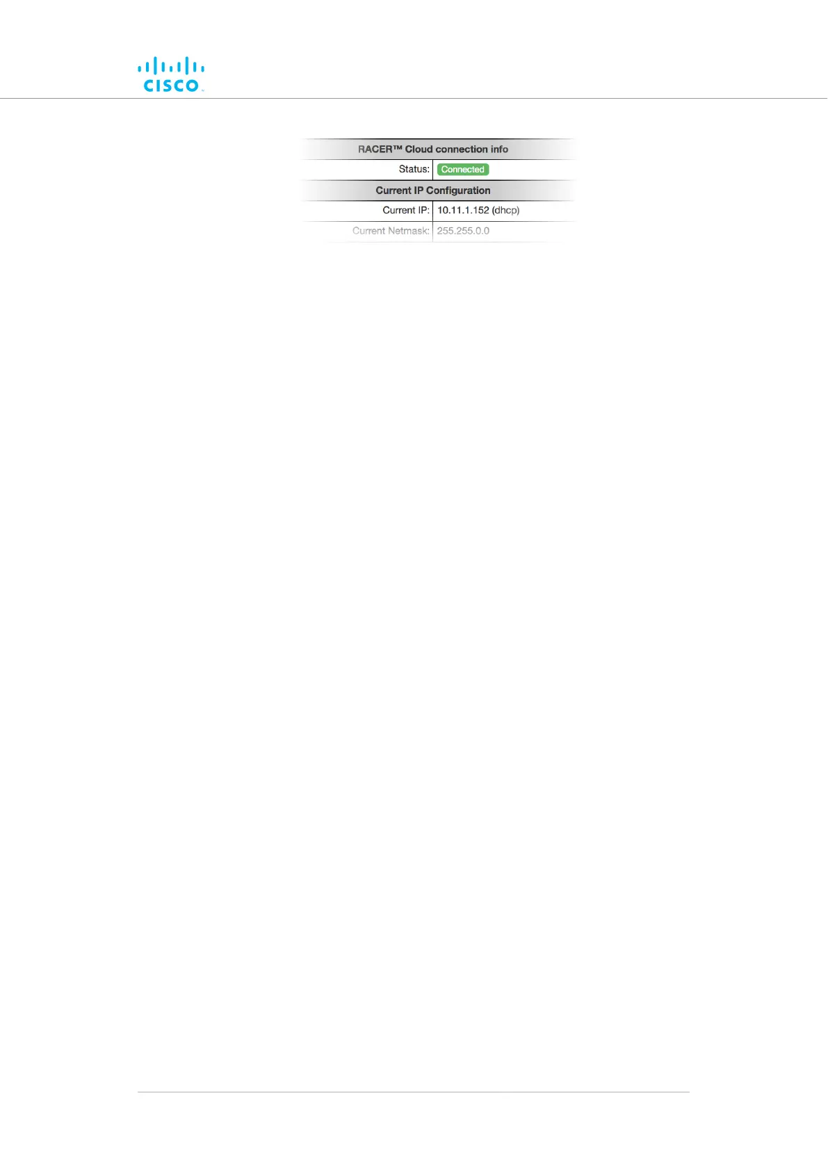Figure 18. RACER™ Cloud connection info status (Connected)