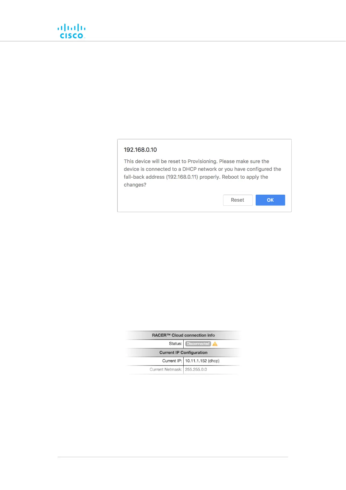 Figure 20. RACER™ Cloud connection info status (Disconnected)