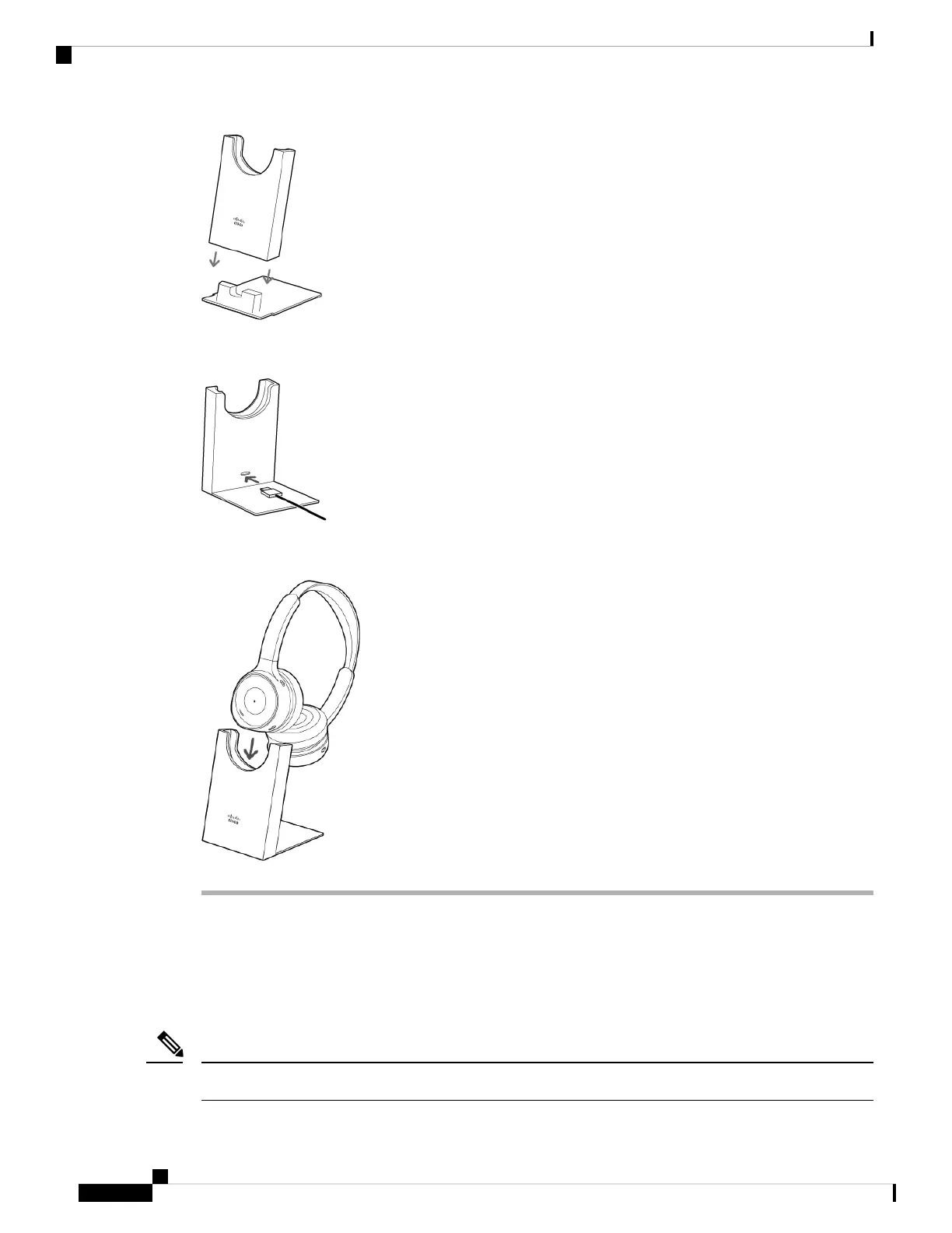 Step 3 Seat your Cisco Headset 730 on to the charging stand. The LED on the front of the stand shows solid white