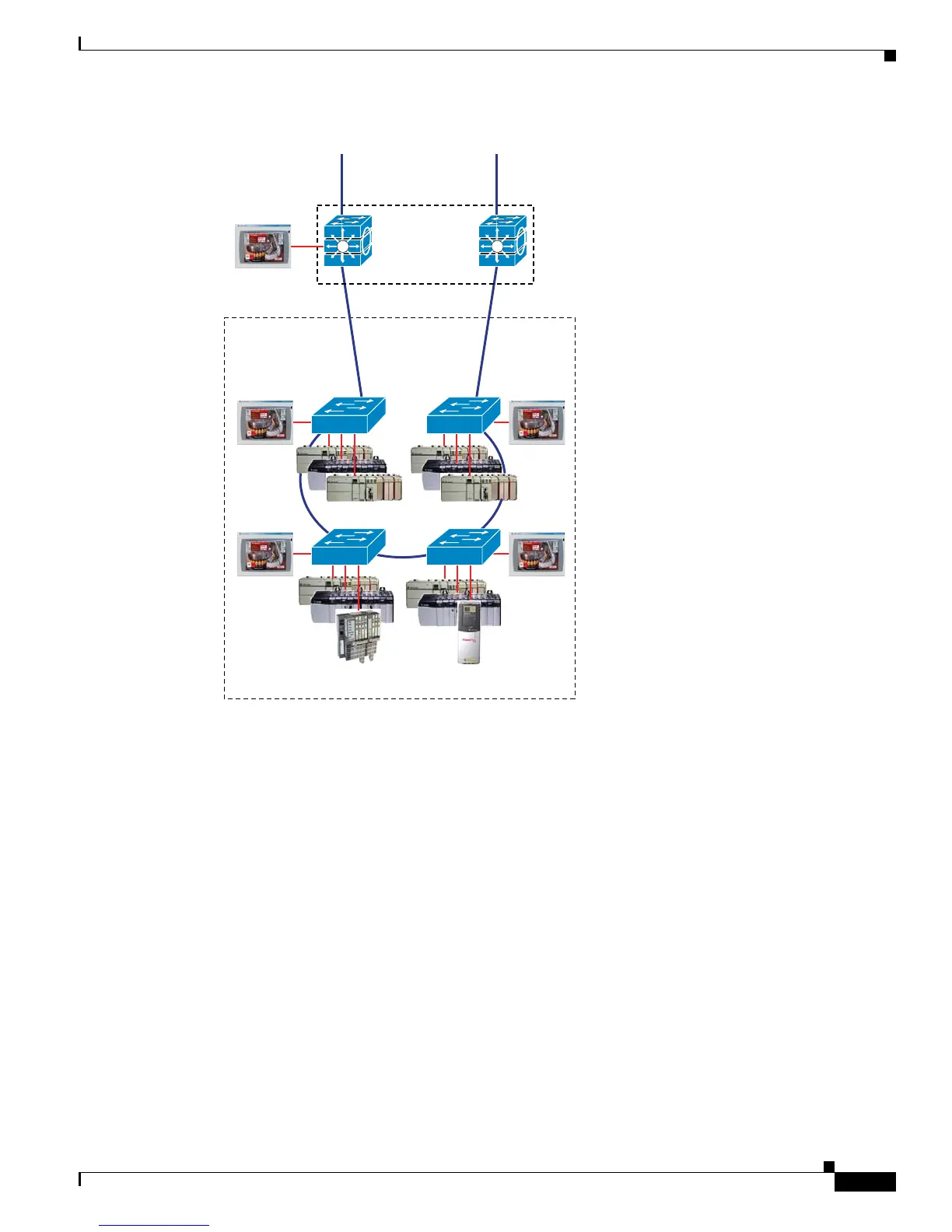 • In the Layer 2 network, each switch has dual connections to the Layer 3 devices.
