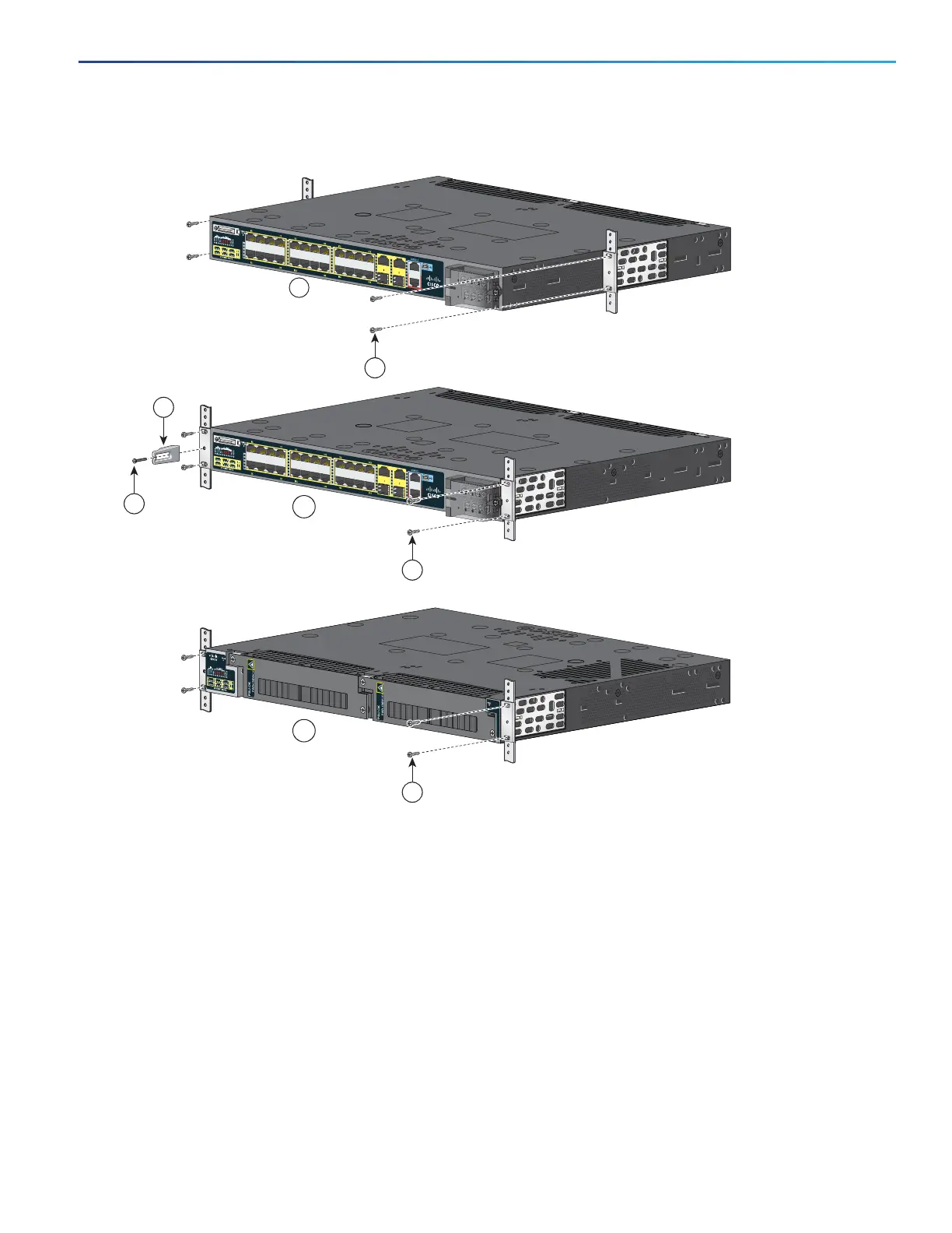3. Attach the cable guide to prevent the cables from obscuring the LED panels on the devices in the rack. Use the