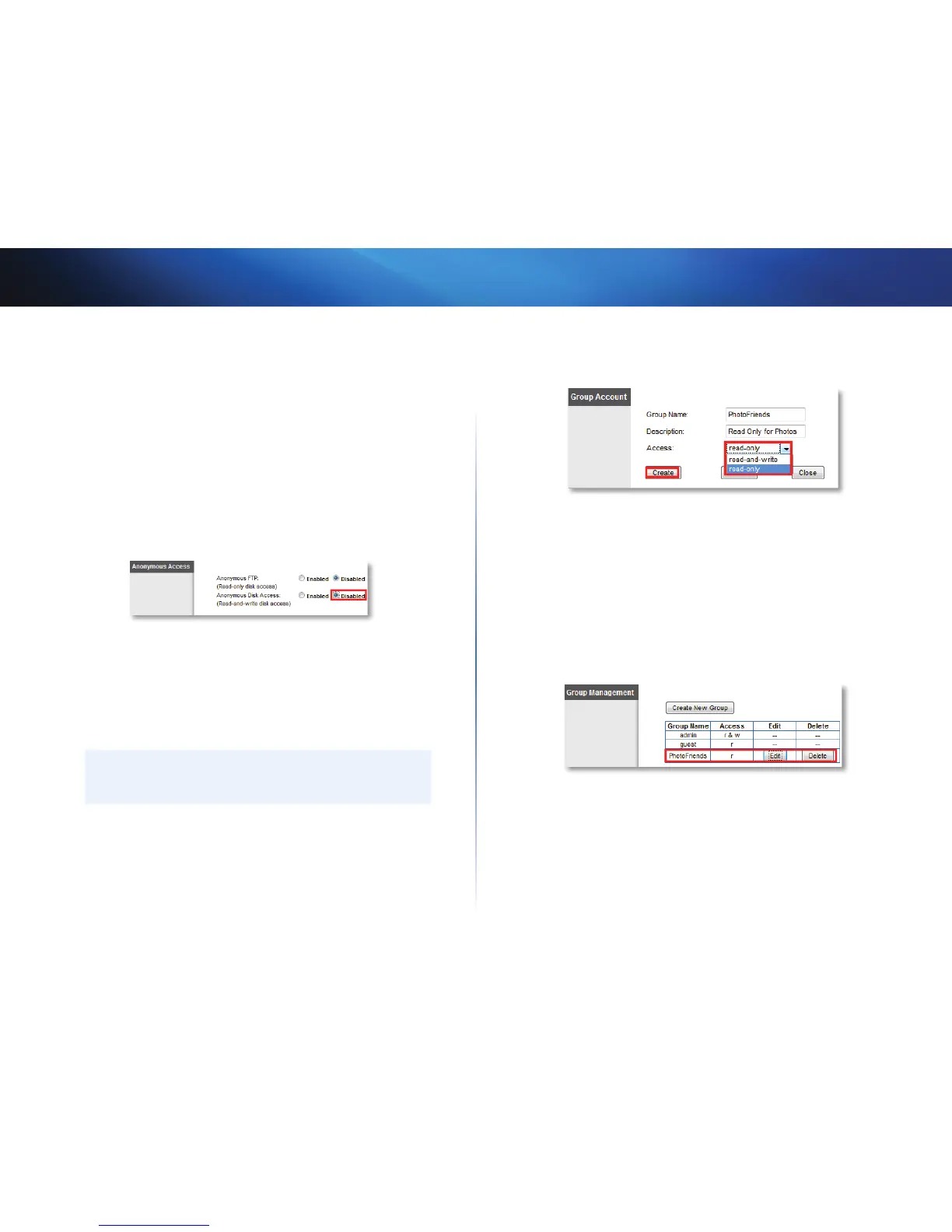 Réglez l’option Anonymous Disk Access (accès au disque anonyme) sur