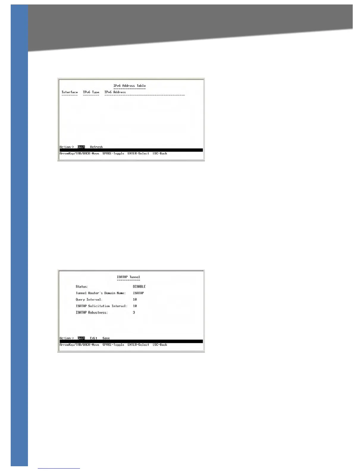 v6 Address Configuration menu, select 4. IPv6 ISATAP Enable.