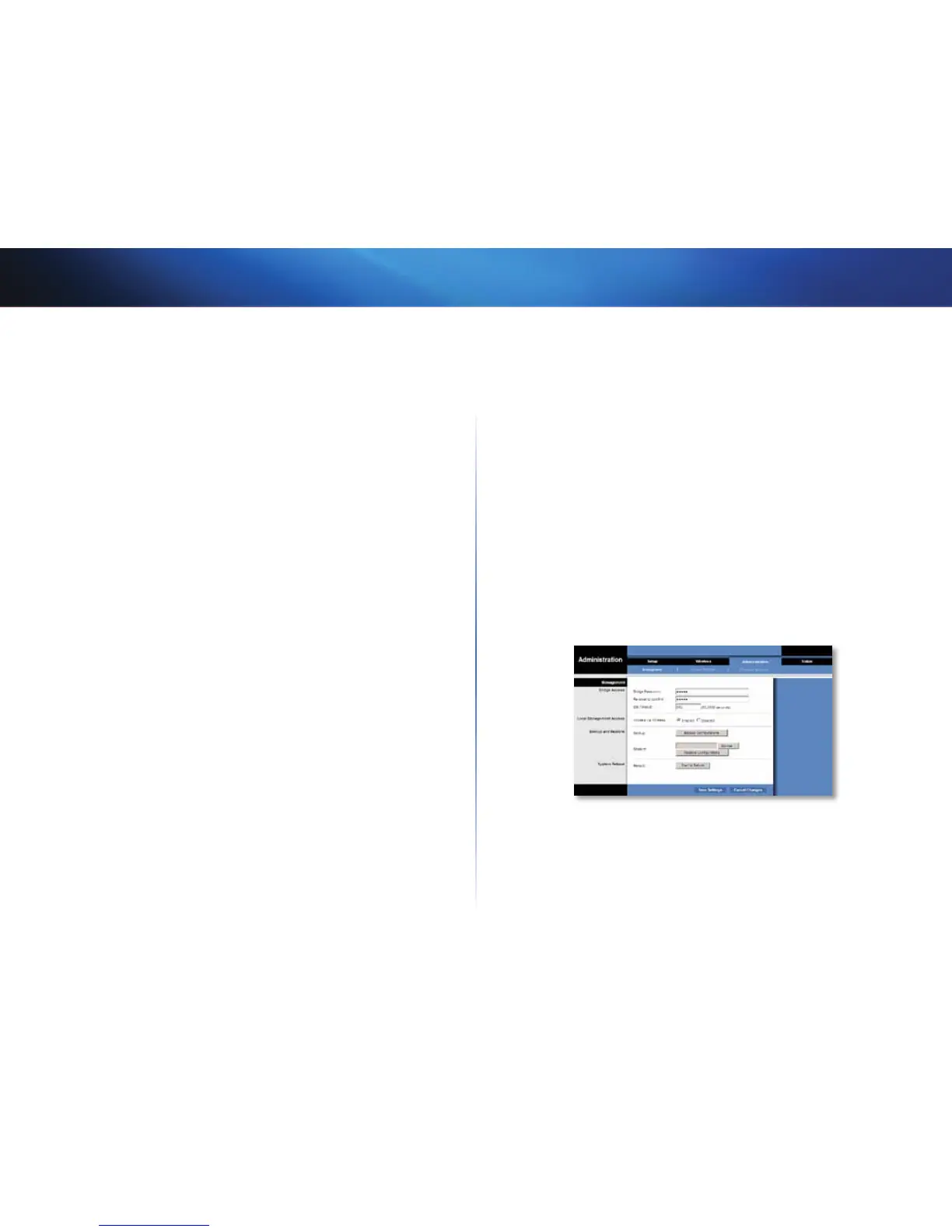 na Web, cópia de segurança do ficheiro de configuração e reinicialização.