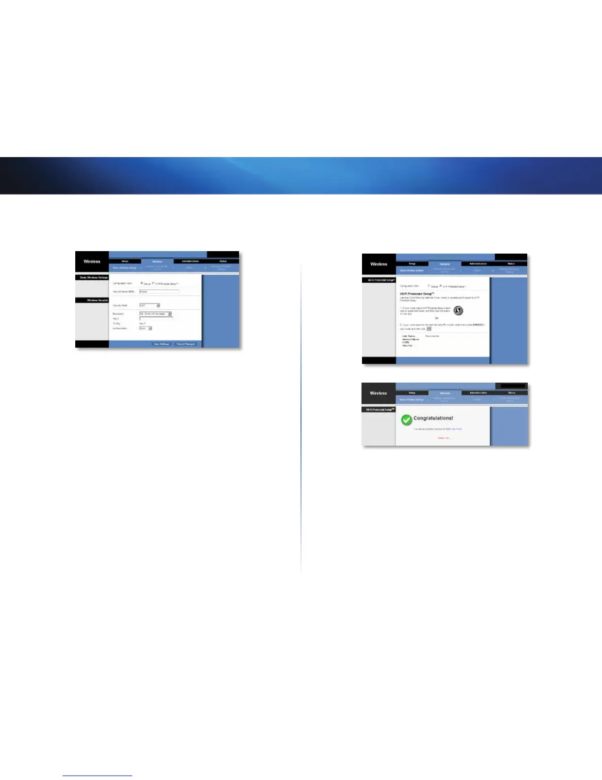 På skärmen Wi-Fi Protected Setup visas länkstatus, nätverksnamn (SSID) och