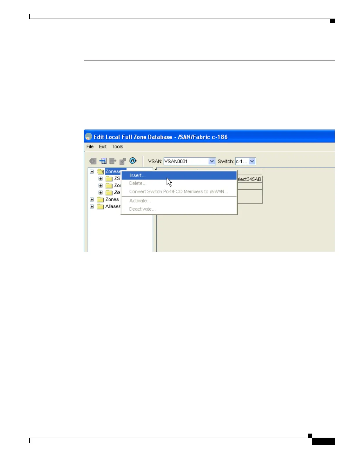 Step 1 Click Zone > Edit Local Full Zone Database from the Zone menu or right-click a VSAN folder in the