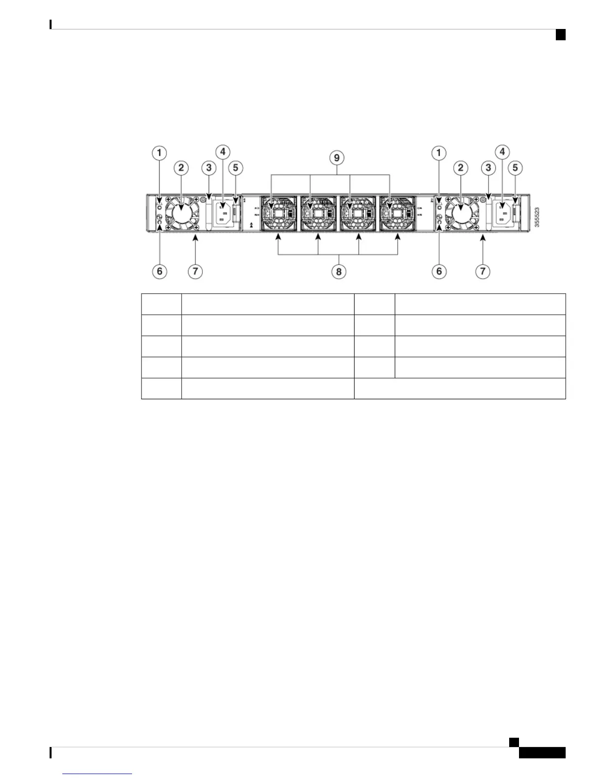 Chassis fan module release latches (8)9Unswitched power receptacle4