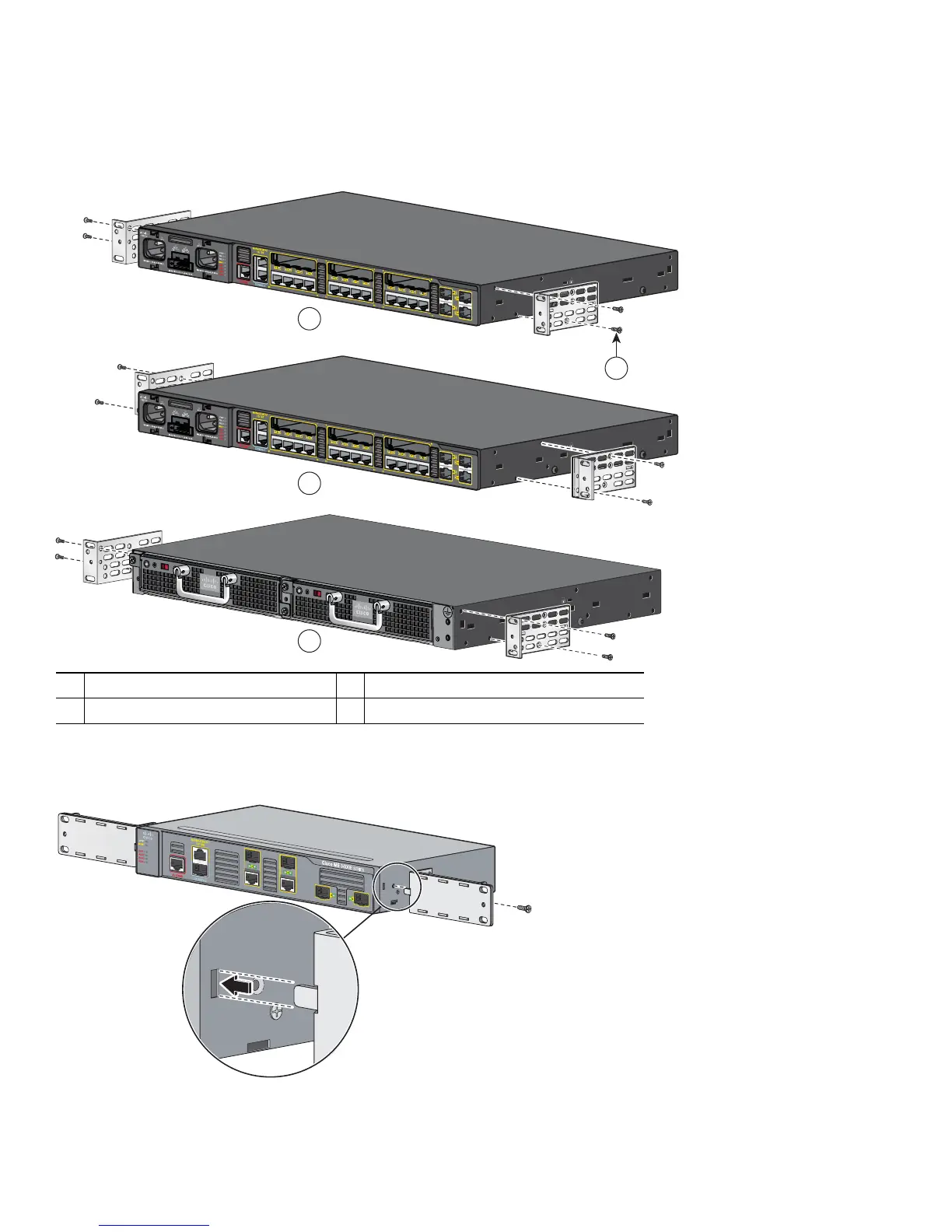 Use four Phillips flat-head screws to attach the long side of the brackets to the switches in one of mounting positions (for all