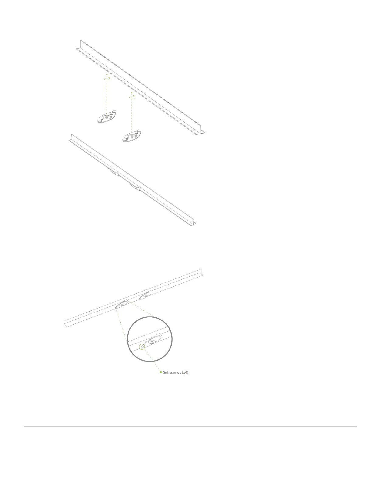3. Tighten the set screws on the T-rail clips to secure the clips using a 5/64”(2 mm) hex key.