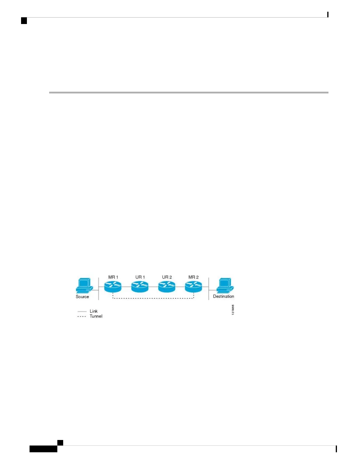 In the figure, the source delivers multicast packets to destination by using MR 1 and MR 2. MR 2 accepts the