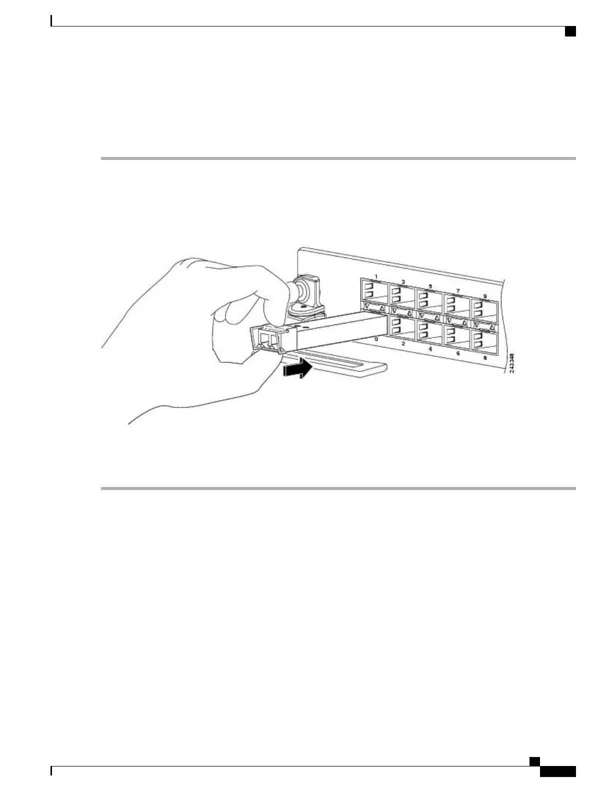 receptacle. Verify that the SFP modules are completely seated and secured in their assigned receptacles on the