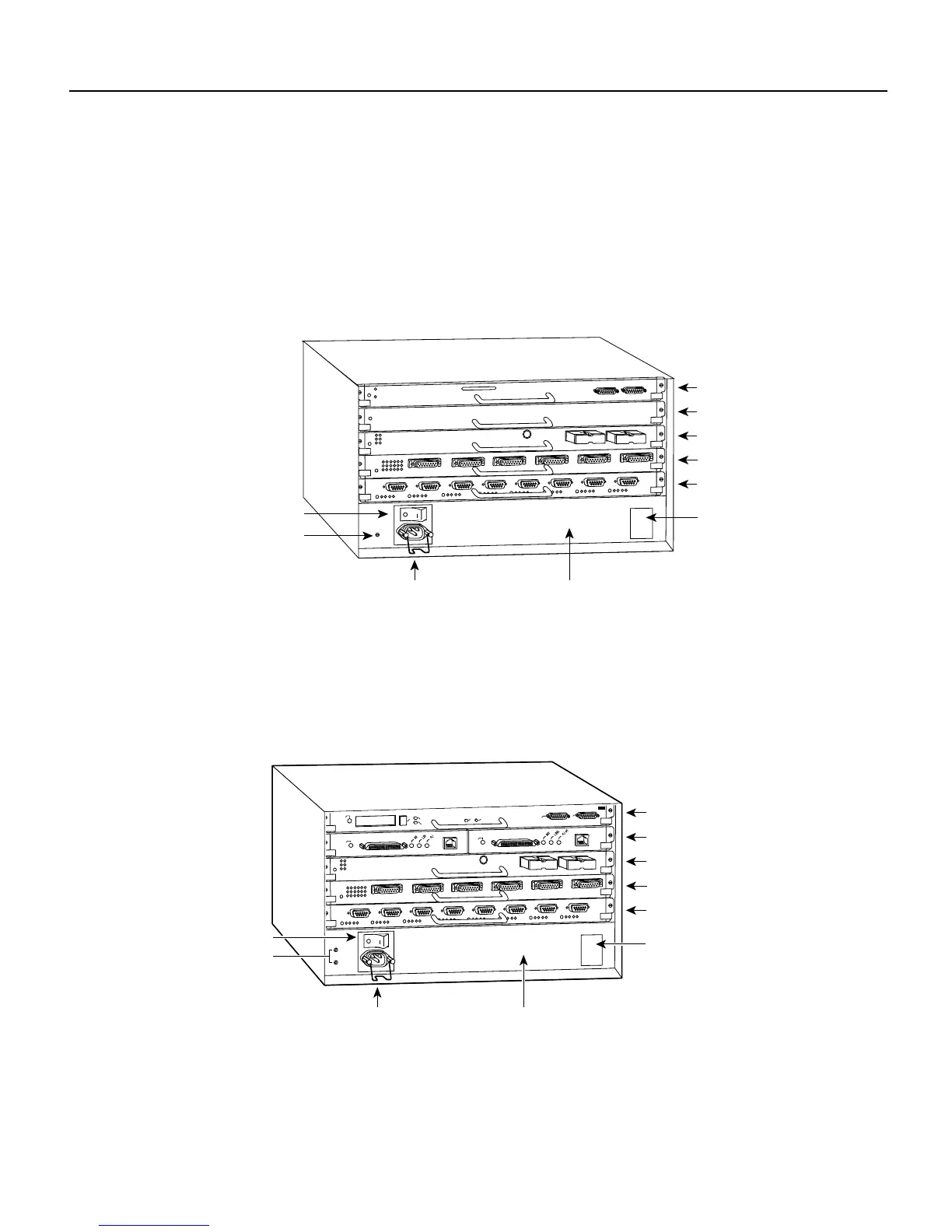 system components in all Cisco 7000 Series routers, occupy the two top slots. The remaining three