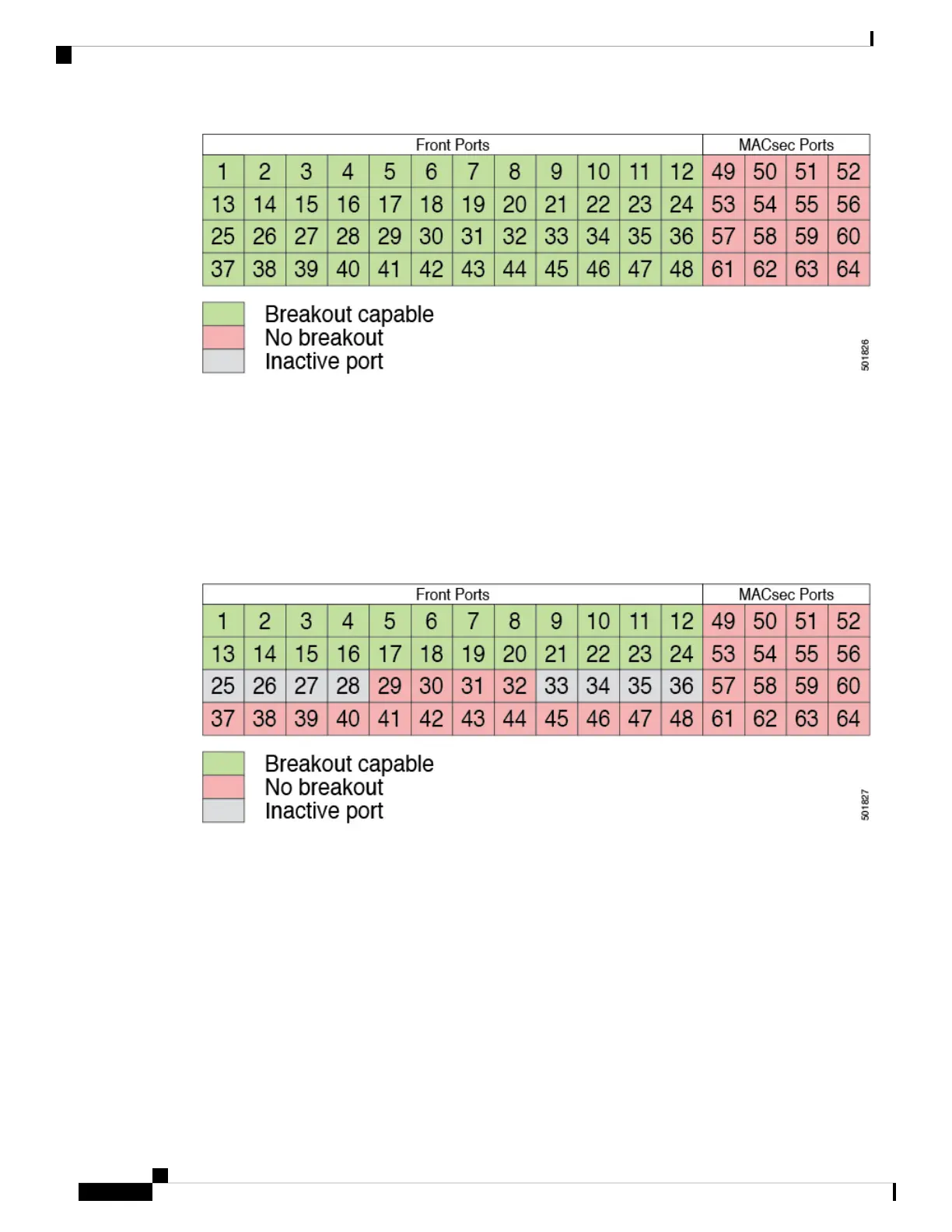 • 49-64 MACsec ports support 40-Gigabit and 100-Gigabit modes.
