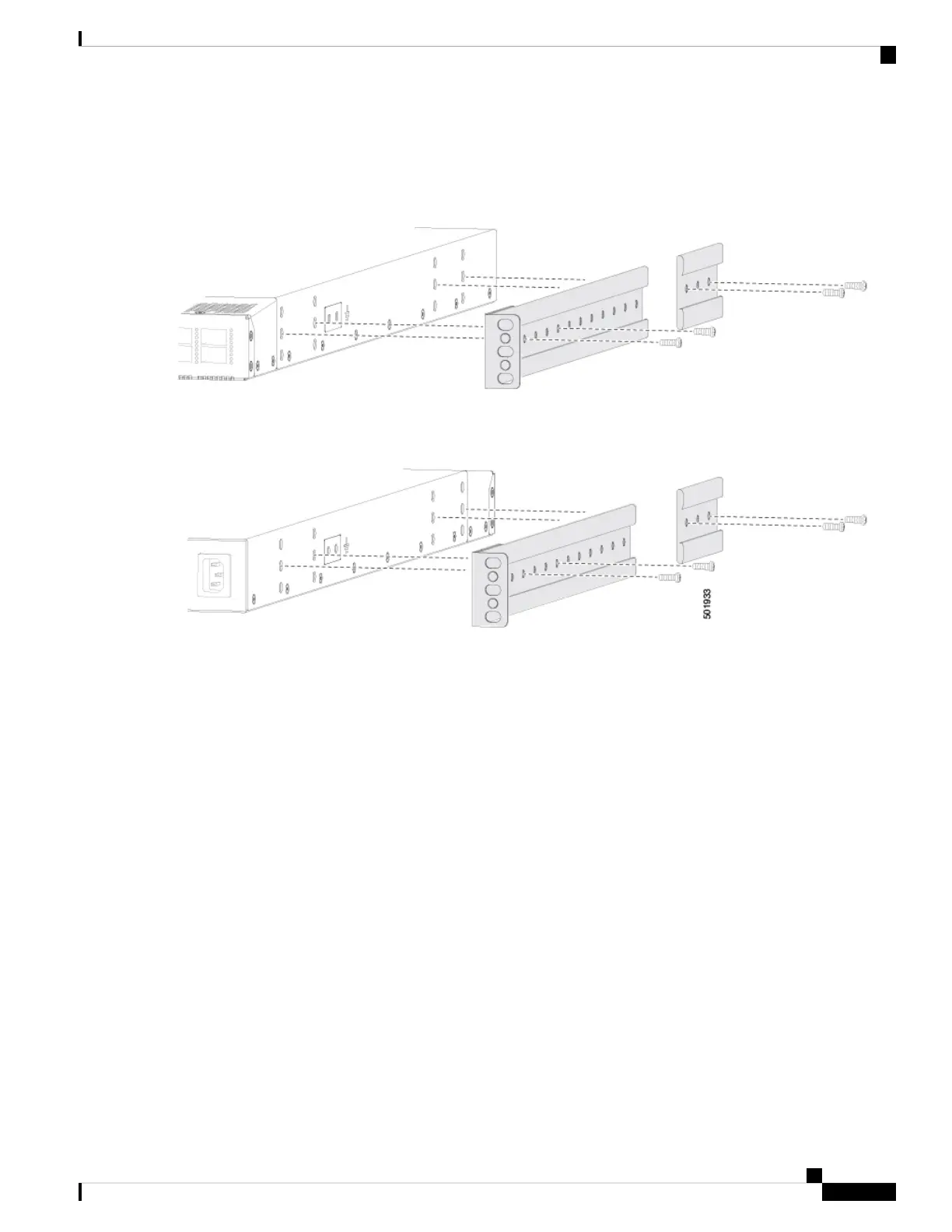d) Repeat Step 1 for the other front rack-mount bracket and the other back-mount bracket on the other side of the switch